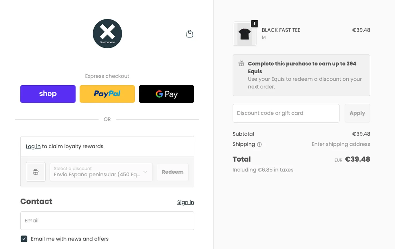 Blue Banana's checkout with points earning extension enabled